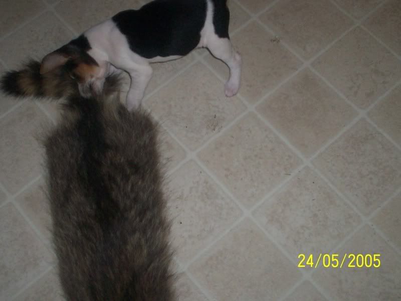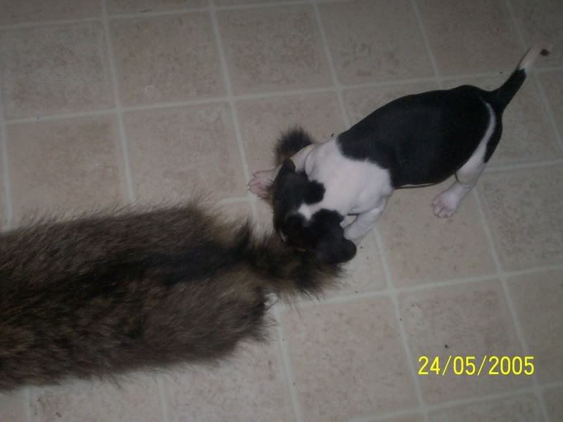 the two on the bench were takein yesterday the others were takein yesterday as well. but the coonhide was like the first week i had her. ill get you some new ones of her on a cage coon she will tear it up.