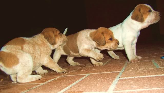 I don't know if it is because there are just three of them or if these 3 were conceived on the 1st time that Jewell was bred <Bred her twice 3 days apart> I do know that these are the biggest strongest pups at their age that I have ever raised. I sure wish the whole litter would have lived.