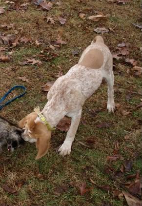 Jess, MAN, those pups just get better! That tricolor pup of yours that is changing a bit...is still a real nice looking dawg! Reminds me a bit of a female that Doug Robinson has... with the blue tail but red ticked body... it's an interesting sort of color.