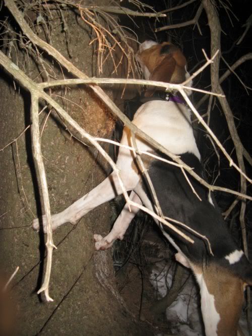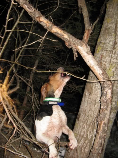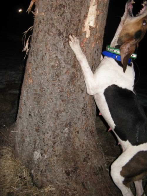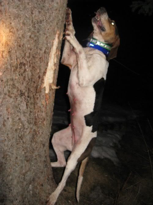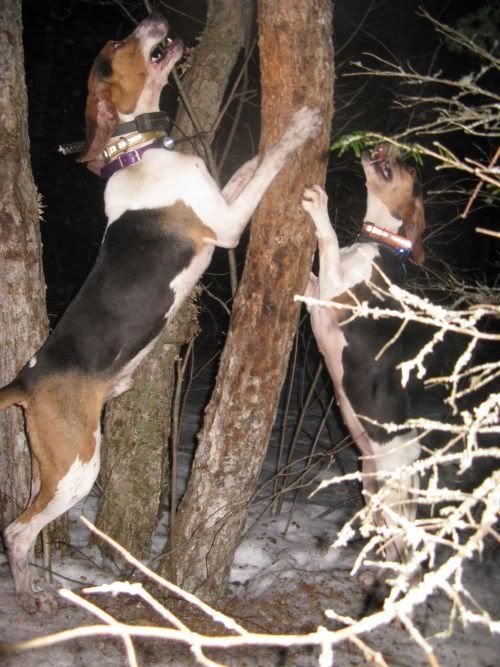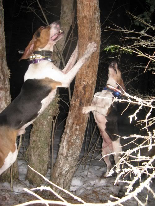 Tuesday night.After we got home from getting our new male Ring we went out hunting. Took Peg & him.Treed 5.