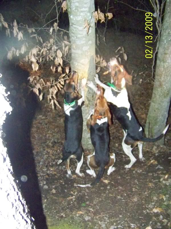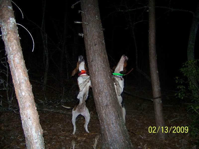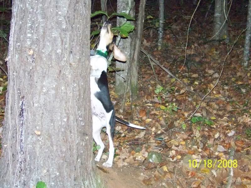 THE DOG THAT'S TREEING IS DOC. THE LITTLE ONE IS ACE. HE'S JUST 4 MONTHS OLD. HE TREED EARLIER ON IT, GOT HIM ON VIDEO, HE BARKED ABOUT 4 BARKS! LOL.
