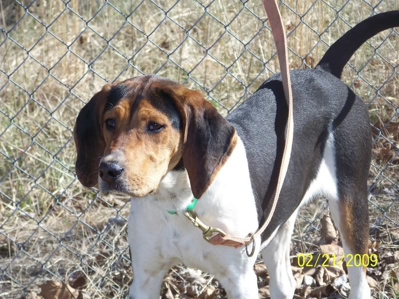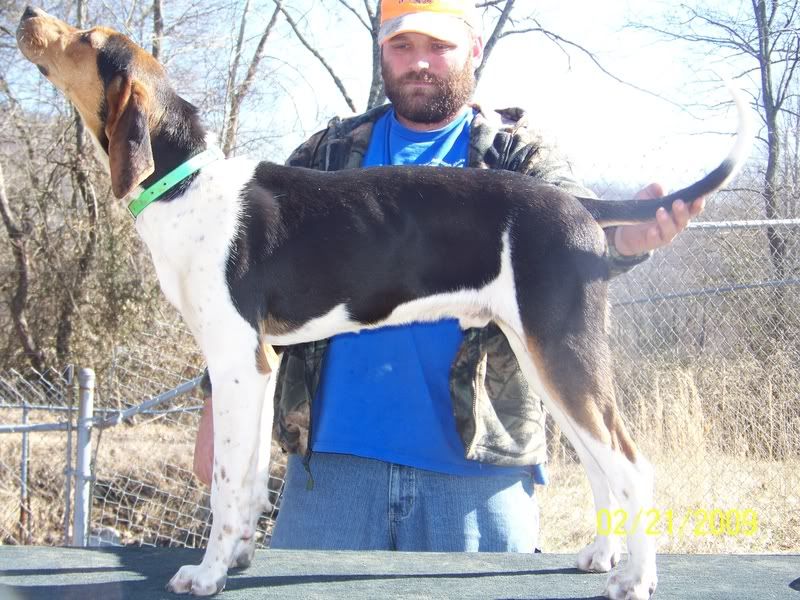 NOW DOC, HAS BEEN RUNNING AND TREEING WITH THE BIG DOGS, SO WE WANTED TO SEE HOW HE’D DO BY HIMSELF. DOC’S DATE OF BIRTH IS 6/4/08. SO HE WONT BE 8 MONTHS OLD UNTIL 2/4/09.
