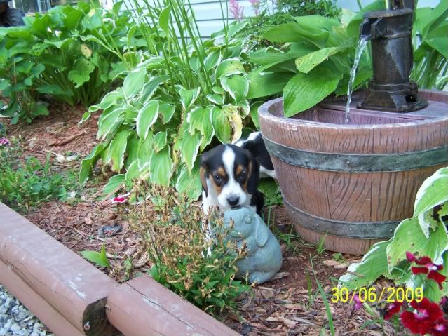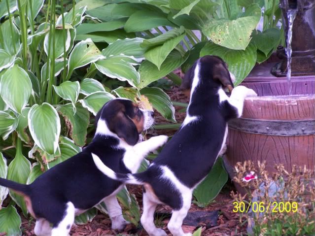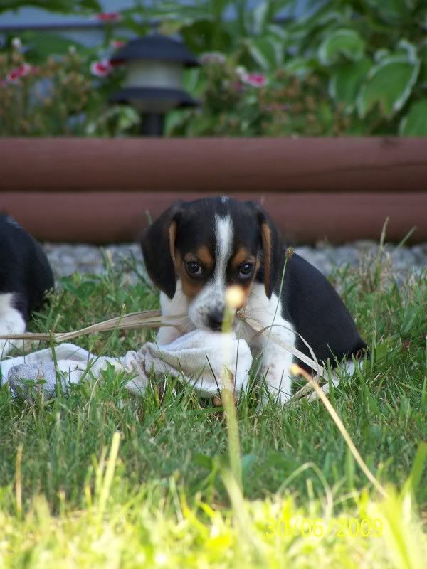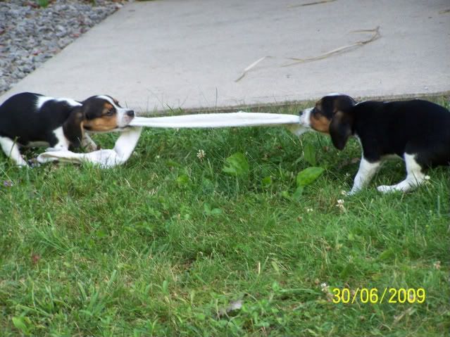 What is the pedigree of the older dog beside the pup? He is better looking than most of your stuff...LOL! As far as the sock goes, I am hoping its not one of the $20 pair you bought a few weeks ago.