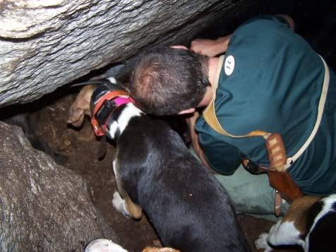 It was a great hunt and with some of the best friends you could ever ask for. Kelly and Jared have some superb dogs there and they are game producers wherever they go, great job Kells! The neatest thing for me was looking at the size of Chris's eyes when he finally got his head far enough into the hole to see the bear looking at him! It was his first bear and what a dandy it was with a heck of a story to go with it. He will be talking about it for years to come. That is what hunting is all about to me and seeing the excitment in that boys eyes was great. Thanks for coming over and bringing the dogs to help get it done!