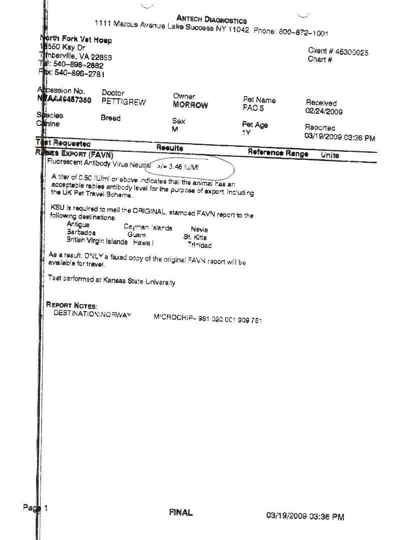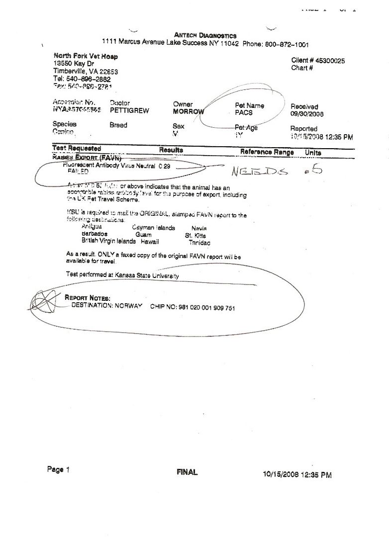 I sent one to Norway and the Hound failed His First Testing and that was After 2 Rabies Shots