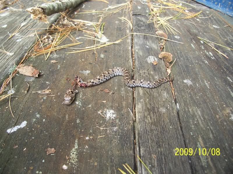 the one in the picture looks so like a rattler it wouldn't have been given a few seconds before wasted around here,,was said game dept. stocked rattlers to slow the turkey population ,,dud ,,dont think it worked,,now we got 2 problems instead of 1,,