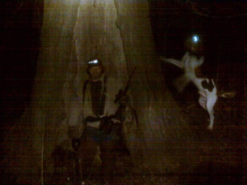This was our first tree tonight. He was actually standing about 3 feet inside the tree. It was hollow as far as you could see. This is probably one of the biggest tree's i've ever seen around here. This picture stinks its from my cell.