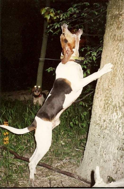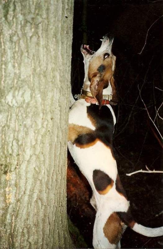 He was a big hunting dog, fairly tight on the ground, independent and usually always had his coon. He had the type of mouth that would draw other dogs into him, there was no doubt when he was treed, you knew it.
