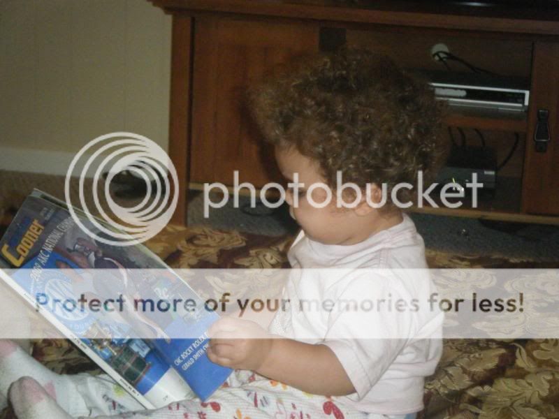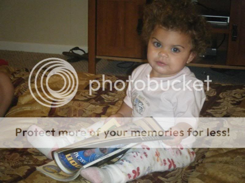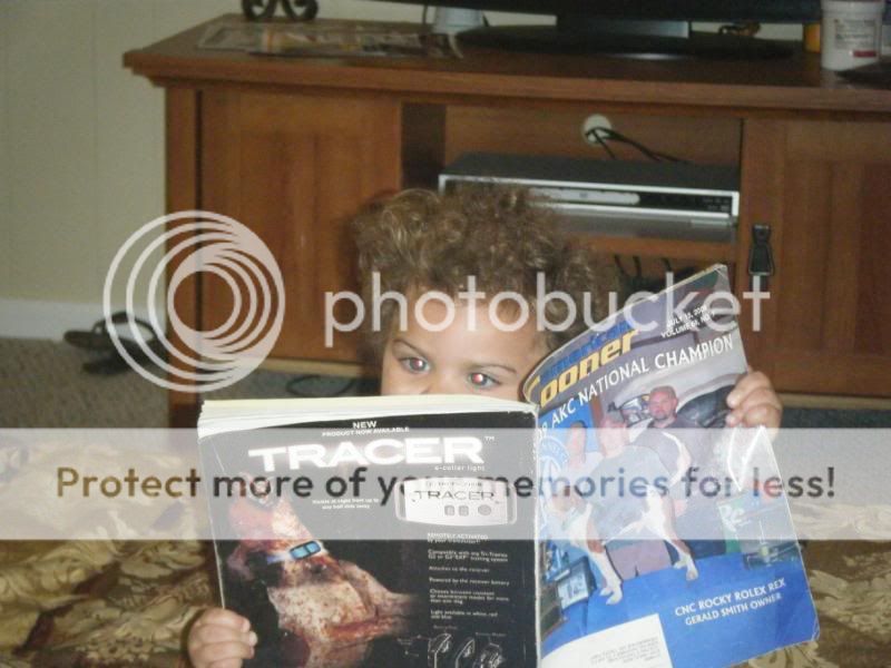 I JUST GOT TO POST THIS. MY LITTLE NEICE KAILEY JADE STRICKLAND IS 15 MONTHS OLD AND SHE LOOOOOVES COONDOGS AND COON HUNTING. EVERYBODY KNOWS IT IS HARD TO GET A BABY 15 MONTHS OR ANY BABY TO SIT DOWN AND WATCH ANYTHING , BUT WHEN ME OR HER DADDY WATCHED TAIL GATE ADVENTURES SHE WILL GET ON HIS OR MY LAP AND WATCH THE ENTIRE SHOW :lol: SAYING DADDY COONDOG , COONDOG DADDY WOOF WOOF AND GRINING JUST AS BIG AS THE DAY IS LONG. IF I AM ON THE COMPUTER LOOKING ON YOUTUBE AT COON HUNTING VIDEOS I DONT CARE WHAT SHE IS DOING SOON AS SHE HEAR THE DOGS BARKING SHE WILL RUN UP TO ME REACHING HER HANS OUT WANTN ME TO PICK HER UP SO SHE CAN WATCH IT WITH ME . WELL LAST NIGHT WHEN WE CAME IN FROM HUNTING SHE WAS ON THE FLOOR LOOKING AT HER DADS AMERICAN COONER MAGS , WHICH SHE DOES ALL THE TIME , MOST BABIES WOULD TEAR AND RIP THE PAGES BUT SHE DOES NOT , BUT WILL TEAR AND RIP PAGES ON EVERYTHING ELSE :lol: AND I JUST HAD TO SNAP THESE PICS