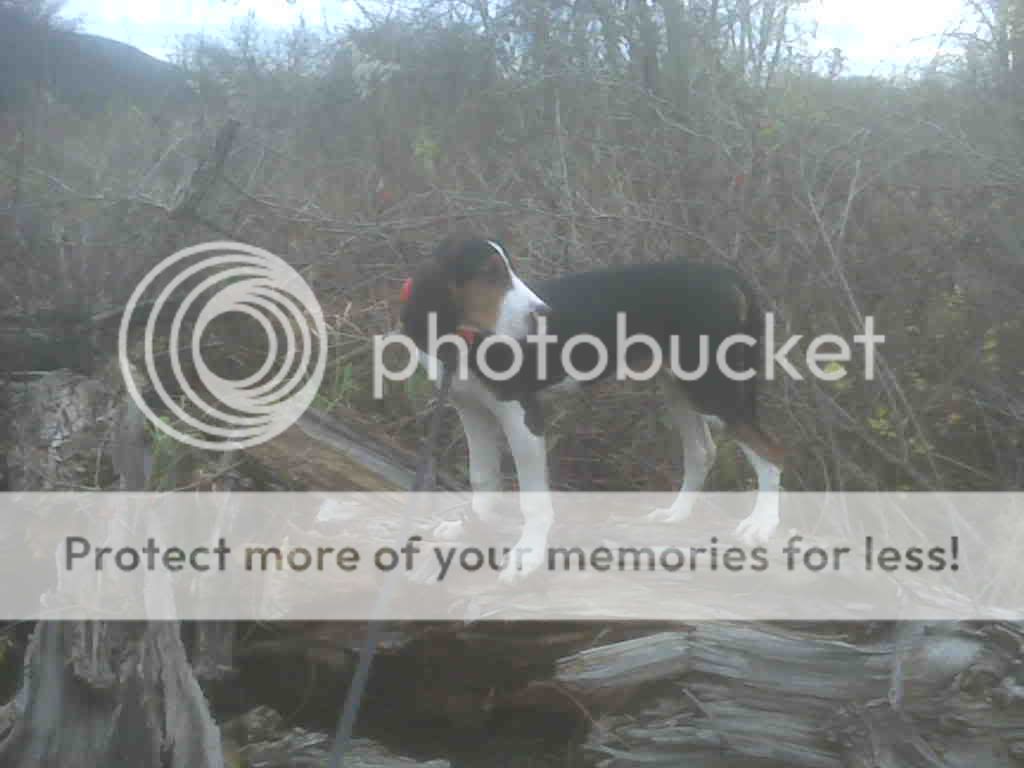 this is a pic of Hank at 4 months. had him out working a bit this afternoon checking traps..he found this old hollowed out broken tree and worked it over lmao