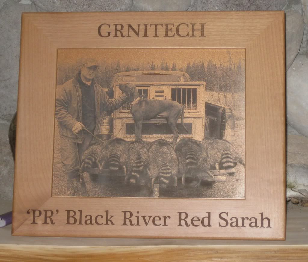 My buddy does laser engraving. Here's a pic I had him do with a laser engraved frame. The pic is laser engraved on metal and the frame is solid cherry. He also engraves pics on copper that look awesome!