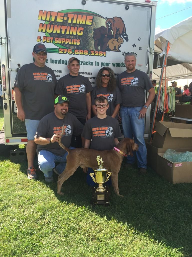 I laid eyes on Shredder for the first time in March 2016 at Southern English days. He is a well built hound that's made of muscle. He won his cast on that Friday night. After that, We saw them again in June at English Days and on Saturday night, Ol' Shredder drew a tough cast and came in with the CW again. We camped with Jamie and Shredder at AO 2016 and I got to witness history in our camp, Ol Shredder came in and won the whole shebang!