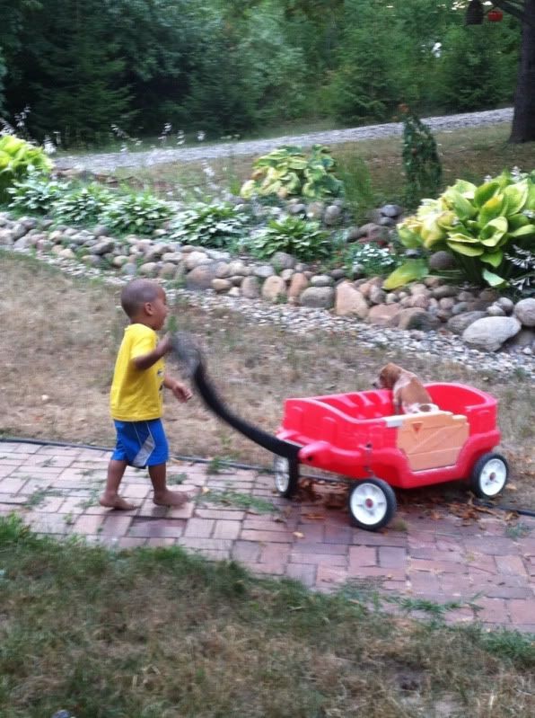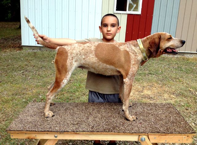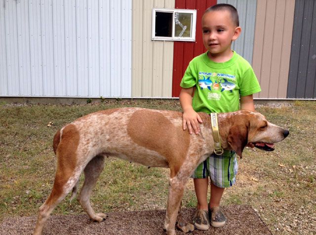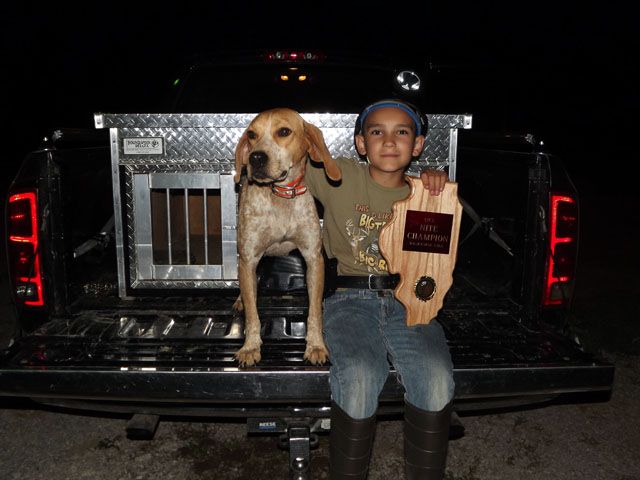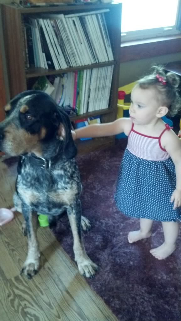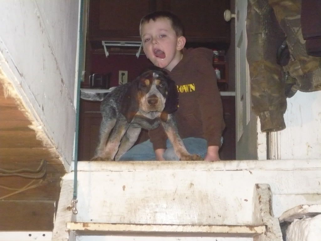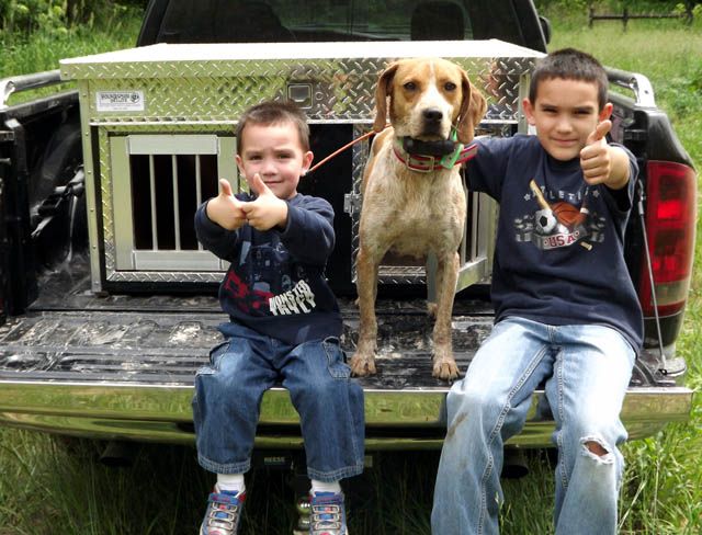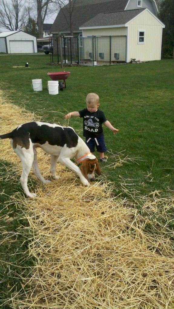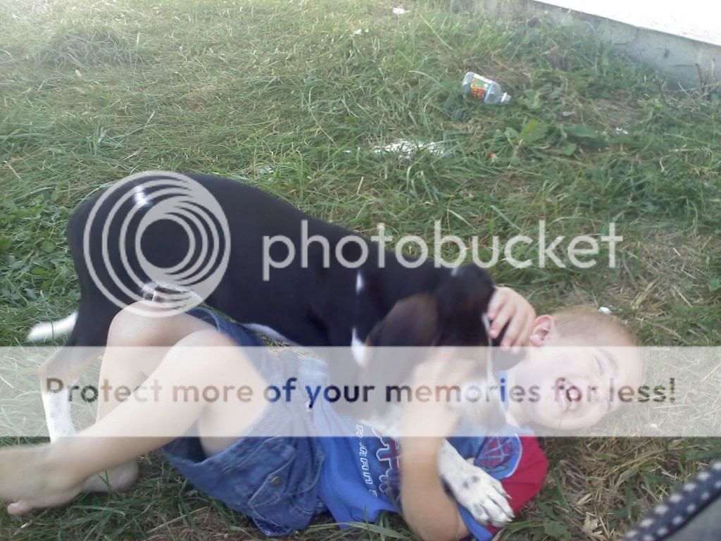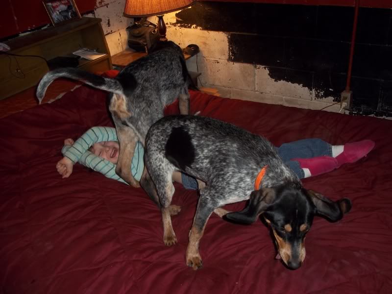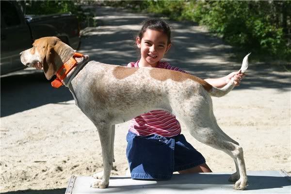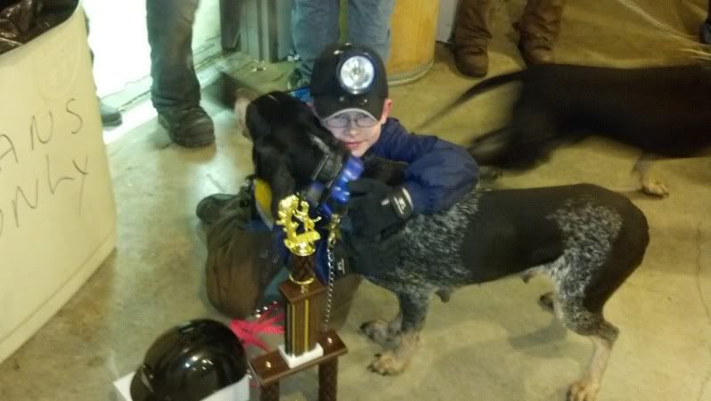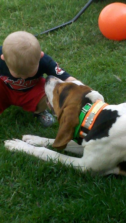 Here's a vid of my old girl (at the ripe old age of 9 1/2) and my friend's 4 year old (she was 3 in these). She was always this easy to lead. I think a hound should have to be good around kids to compete, mostly because its supposed to be a family sport. All my dogs are good around kids, or they don't stay here.