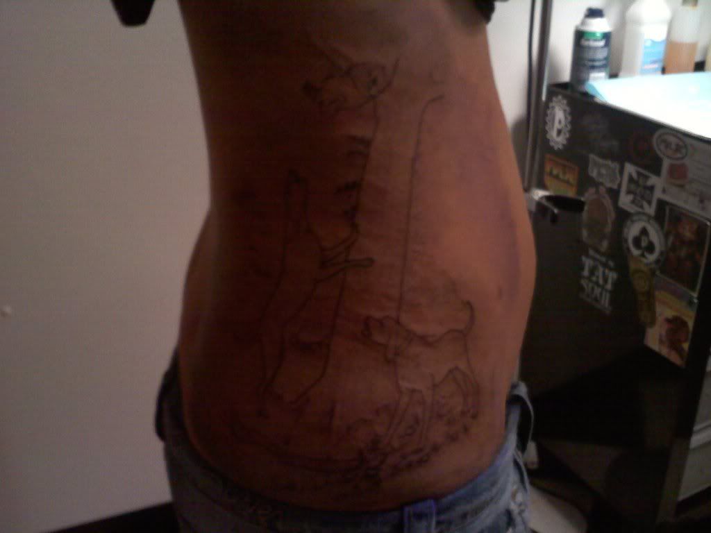 I think i did this right...lol.. been while since i posted photo.. Im gonna have.... TREE MY DOG... wrote some how just not sure yet.. think ill have it wrap around arm and have the tree bark look to it...http://s1110.photobucket.com/albums...7_8132373_n.jpg