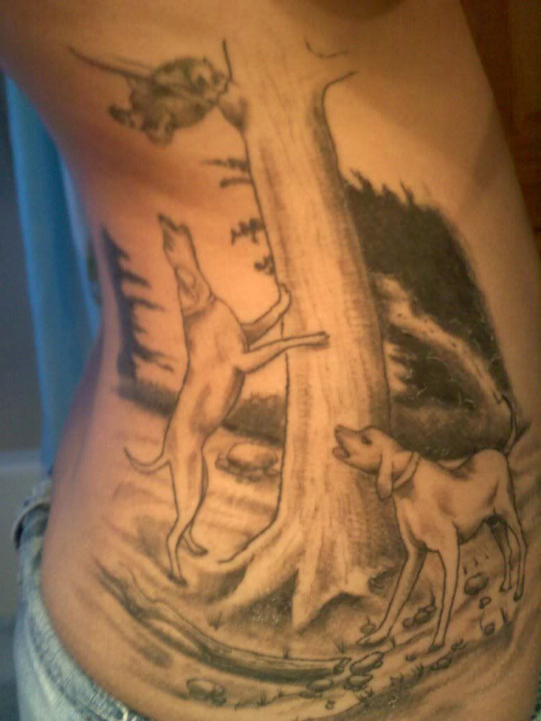 those are pretty cool amber!!! im planning on taking a picture of Thunder treeing and having them scetch him out so it wont be just any dog tattood on me, it will be him. planning on getting it in the next few months