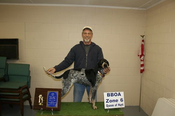 (2010 BBOA Zone 6 championship Queen of Hunt and High scoring dog, 2010 Alabama State BBOA Championship Queen of Hunt and High scoring dog, 2010 South Carolina State BBOA Championship Queen of Hunt, Qualified 2011 WI governors cup)
