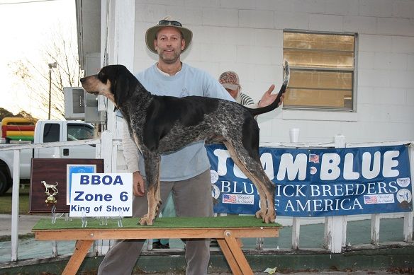 Grnitech Grch Grwch Mad Dog Psyco Talk to em Toby (sire and dam both quad grands, Finished to nitech and BBCHA, BBOA high scoring blue male 2011 Autumn Oaks, 2012 and 2013 Bluetick Days King of Water, 2014 BBOA youth nationals King of Water and Champion male, 2014 Alabama Hall of fame hunt King of Water, 2014 Bluetick Days Blue Hunt 2nd runner up, 3 nite ch wins over 1000 points) owned with Robbie & Lisa Brooks