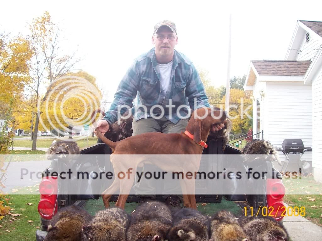 I think some need to realize that he just 1 ,and I dont shoot all heck theres nights i don't even have a gun with me, My dog has treed almost double the coon that i have shot and I have a freezer full I don't care if i get a buck a piece for them, this is his first coon season and I'm going to keep on keepin on because its working, maybe hes not the best , but hes good at what he does even if its just lying here next to me on the floor while i write this hes happy i looked down at him and he wags his tail if i say "want to go Hunting" he would get up and walk over by the door and wait there until I get ready, my wife has a daycare does bother anyone around here , he don't ask much a scratch or pat on the head,