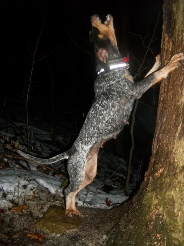 ANOTHER NIGHT HE WANTED TO GO. GET GONE-GET TREED-HAVE A COON. HE WILL BE 13 MAY 20TH. <v>