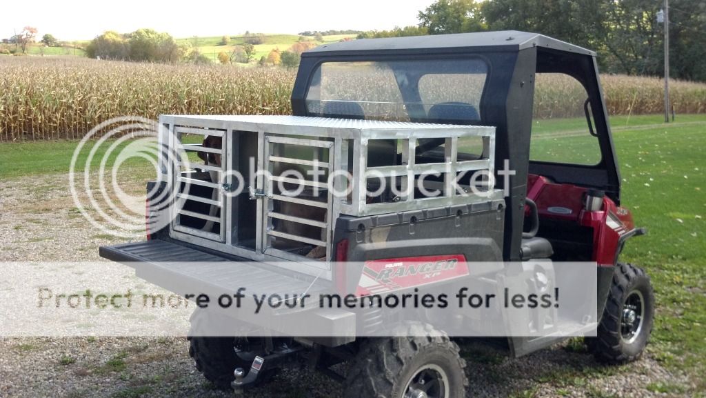 Mike Smith of Shepardsville , KY. built one for my Ranger a few years ago . More of conventional dog box with side sliding vents for northern MI. use . About a third is top storage for my rifle and collars etc. and then the rest of the top as a low railing around it to carry the coon we get without falling off . Works good since the box uses all the space in back . A little tight for 4 dogs but works ok , perfect for 2 .
