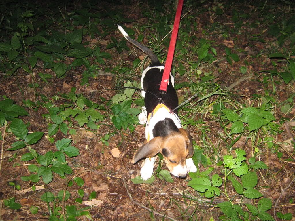 ace on his first hunt 10 weeks 3days old tied at the tree he even barked some...we had the garmin on him he got out about 70yards he hunted in circles around us just exploring...it really impressed me he didnt hang out at our feet....he shows alot of promise he tried to follow the big dog but couldnt keep up.