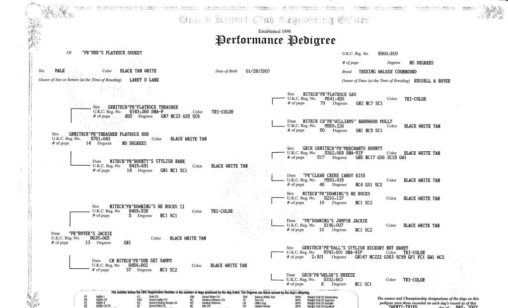 YOUR DOG IS BRED TO TO BE NICE BALANCED HOUND ON BOTH SIDES OF PED . HARRY,S BROTHER IS BURIED ON MY PLACE AND I ALSO BRED TO HARRY. NICK AND GABE ARE OUT OF HARRY'S BROTHER .