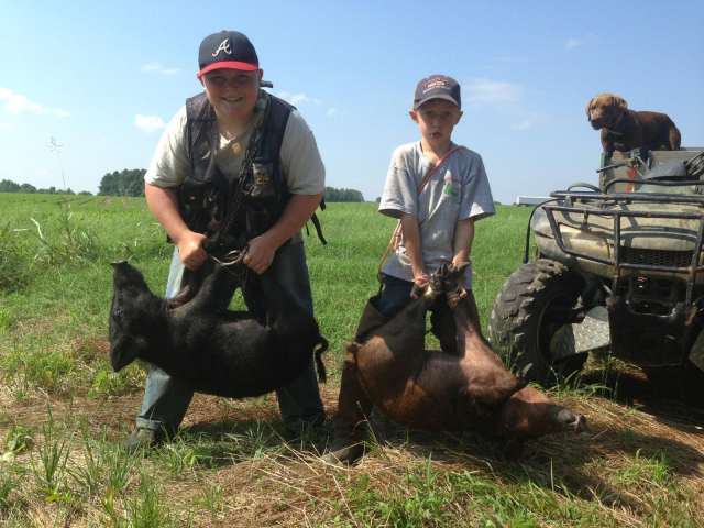 that boy with the atlanta braves hat is stout as all get out,hes got a pig in each hand lol.them kids are hunting hogs while the rest of the kids in america are are worried bout american idol.lol