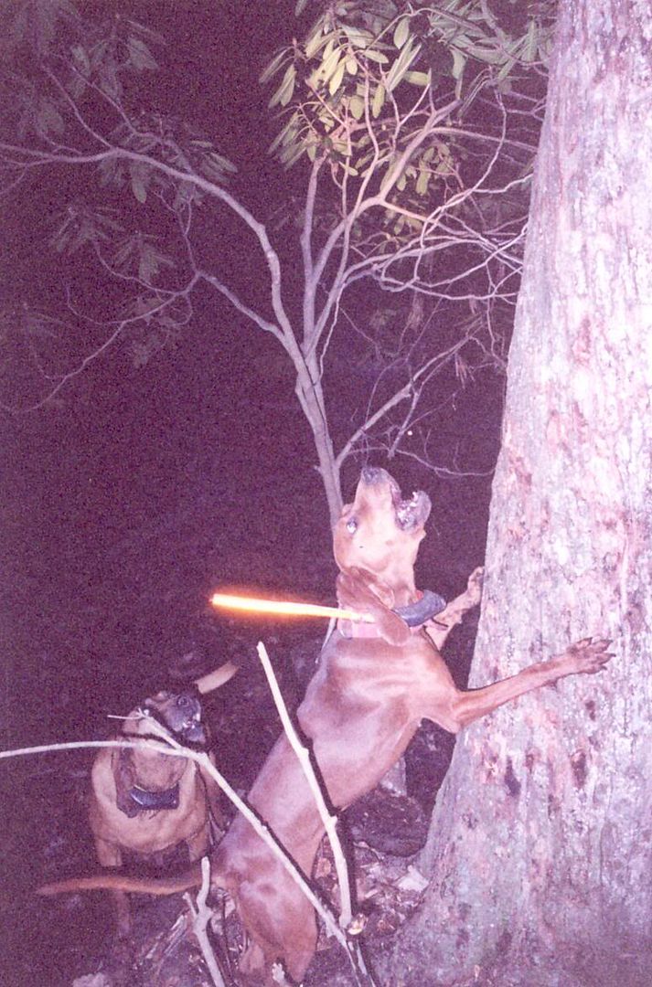 thay are 3 and 4. Some where I have photo's of my younger hound's (pup) treeing. I will post the photo's when I find them.