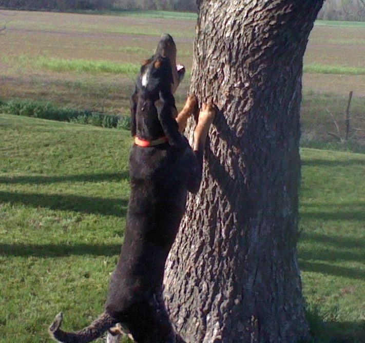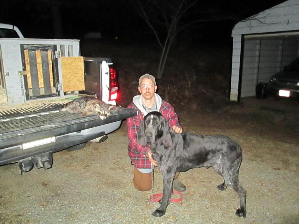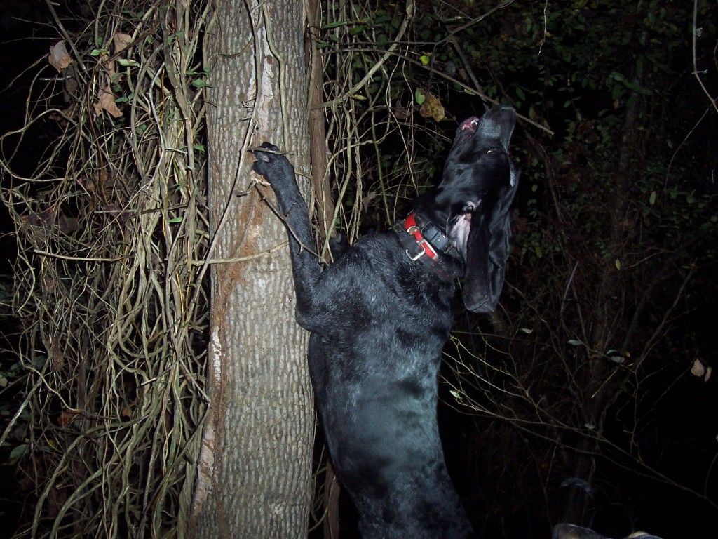 Here is a bigger coon dog for you. He is 85 lbs in hunting shape, is fast on track , quik to tree and trees right. He has been tested in swamps, dry drought conditions and during hide season with wind and snow blowing 30 mph. He always gets into coon rather in be at the truck or two miles away he will be under a coon when you get there.
