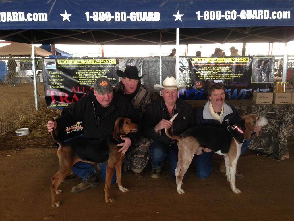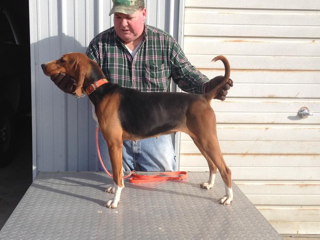On January the 25th at the Winter Classic Gary McCaslin purchased Treeing Walker Hall of Famer Delton Halls' last 3 personal females . Delton had recently sold his stud dog "ReHab" and decided to come to the Winter Classic to sell his last females. While others scrambled trying to decide which female they were interested in McCaslin had already made an offer to purchase all 3. When the dust settled and Delton had tired of the tire kickers the females were on their way to the once great state of Illinois. Now ole McCaslin knew that Super Star Breeder Curt Ahring was interested in Nt.Ch.Diehard Black Magic because she was coming in heat so thus a partnership was formed and Magic was sent to Missouri to be mated with the Immortal Trackman !! Curt will be handling the raising and selling of this cross.