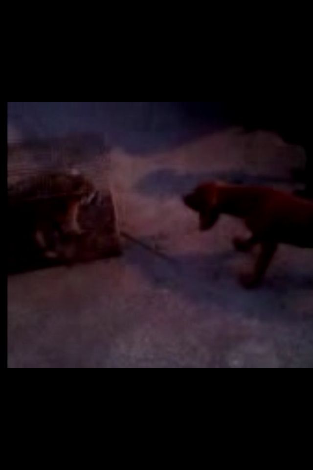 Him at 3months barking at a coon . That pup up in the picture is his at 5 months