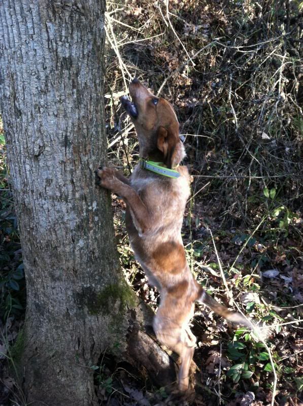 I don't have a truck right now so this pup is just getting messed with here and there around the house and in the woods ive been takin her at night down to the creek and letting her run around. she will track a drag and tree it hasn't opened much on the ground but she will tree it coon is slim around here. a lot of pine woods