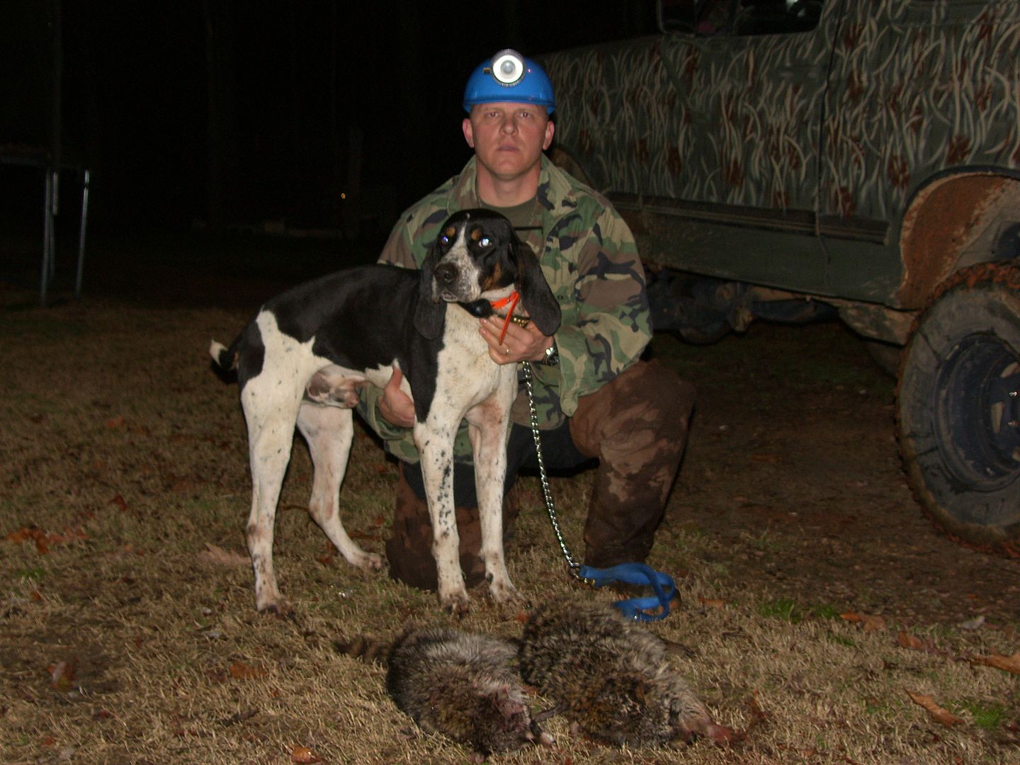 NEVER TREED AN OPOSSUM, SKUNK, DEER, ARMADILLO, HOG ETC.