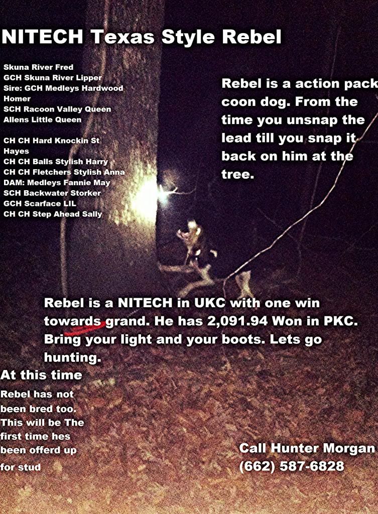 I believe Rebel is the type of hound that would help the walker breed out. Hes got a head full of brains he has been bred and will post the pups on here when they are born. When you leave from the tree you dont snap rebel he will follow you out till you tell him to go again then he will be gone in a dead run hes a pretty close hunting dog but he will get deep if nothings moving bring your nice females and get them bred.