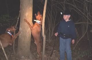 I have 3 older daughters that all went coon hunting with me and yes, even the youngest was carried in a child carrier. My oldest, when she was young would be pushed in a stroller while running beagles. This is a picture of my son who attended a couple of night hunts with me. Thanks to Danny Cox for letting him handle this dog in his first night hunt. He got high scoring dog.