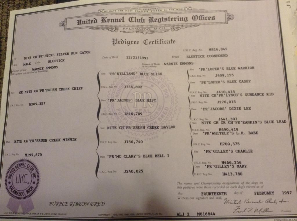 Oh, and a couple guys wanted to know how many pups Gator sired. That would be 33. Have no idea how many had titles.