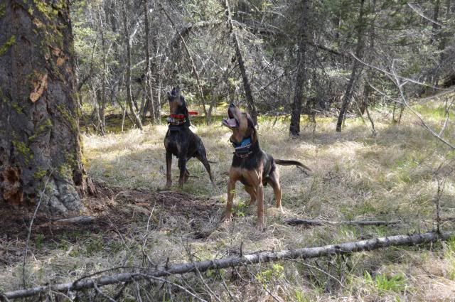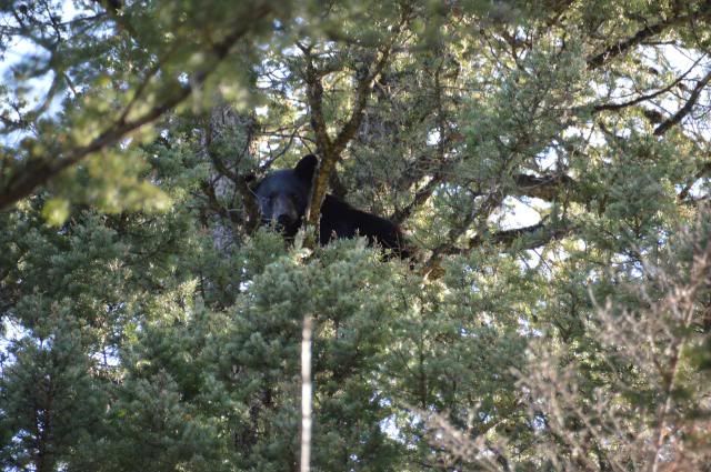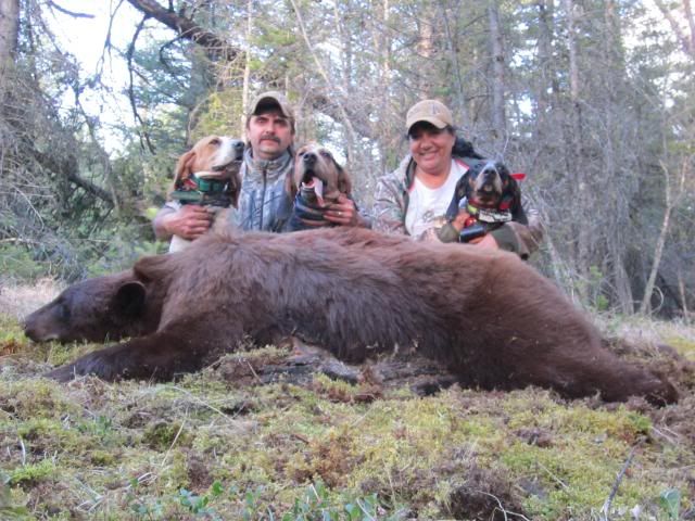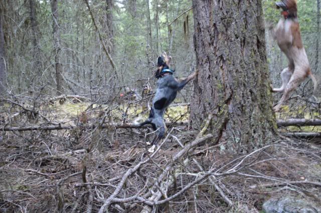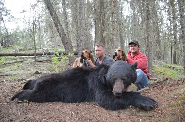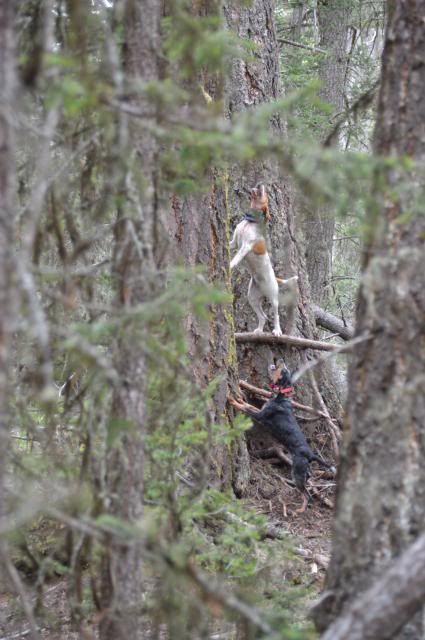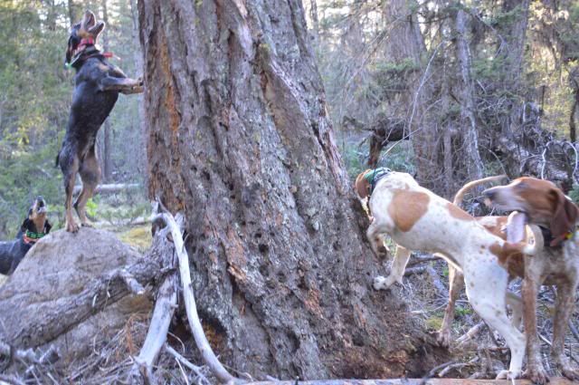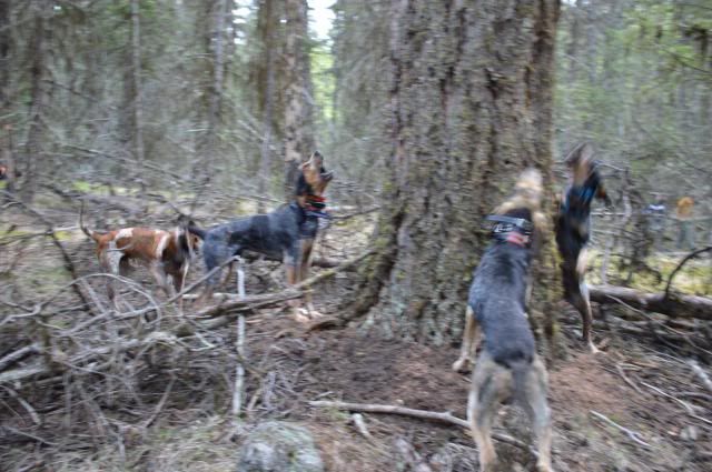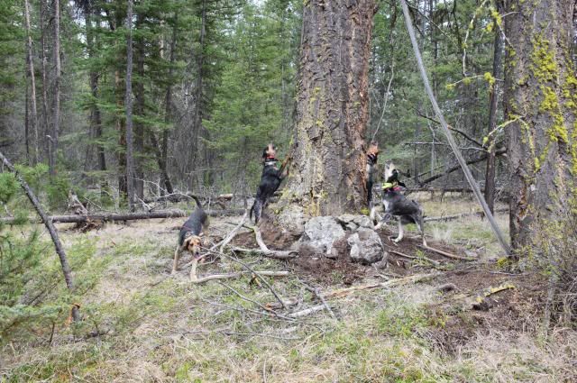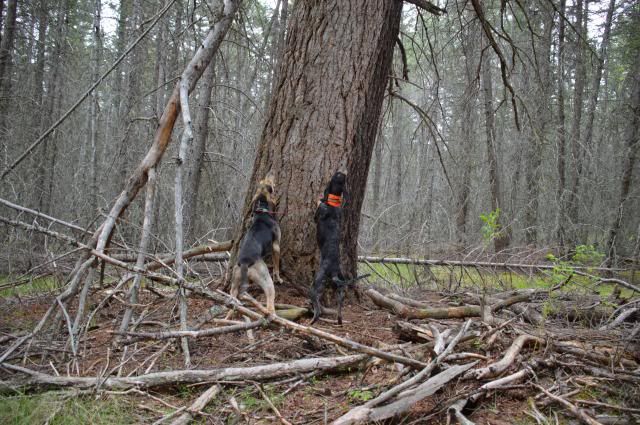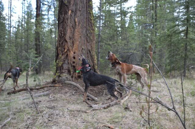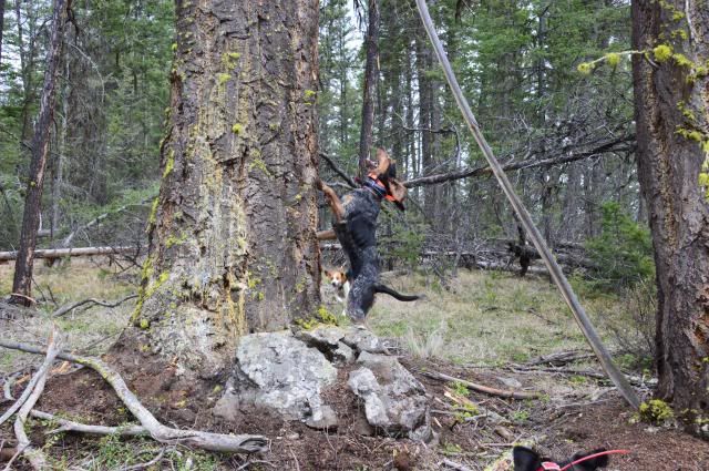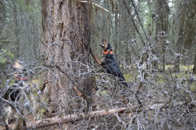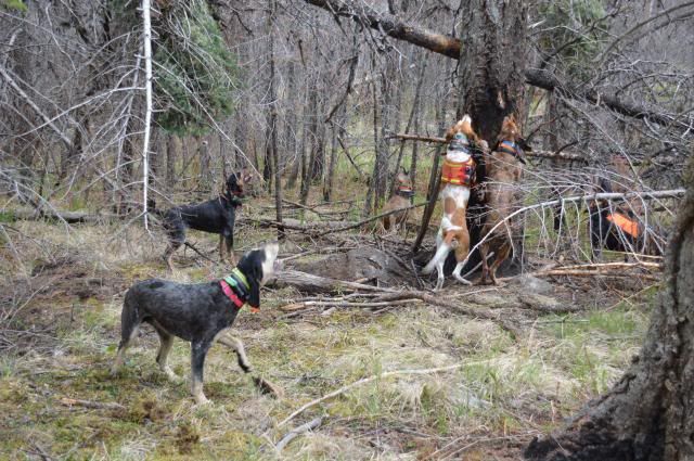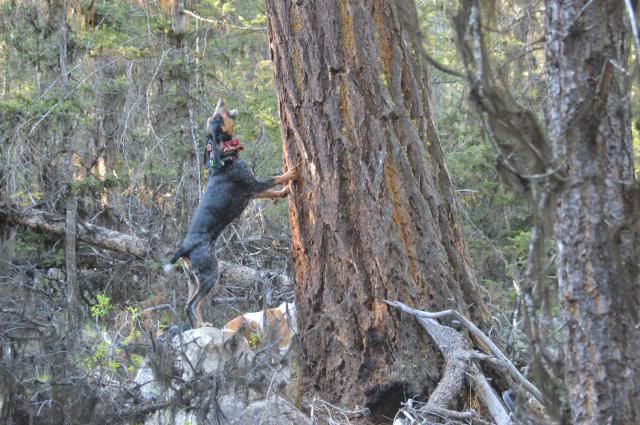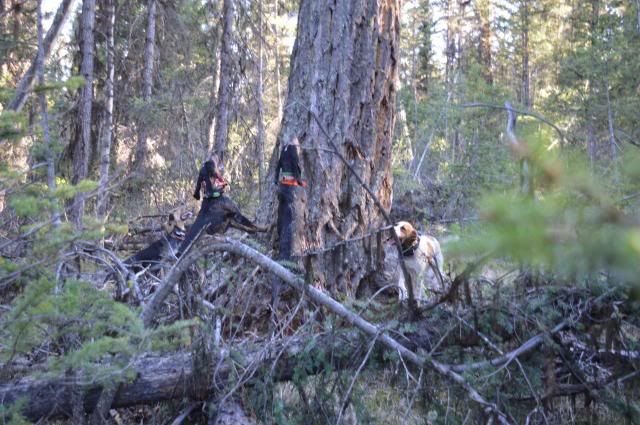 This bear gave the dogs a great run. It sure picked a small tree to get up. They were putting a lot of heat on it.