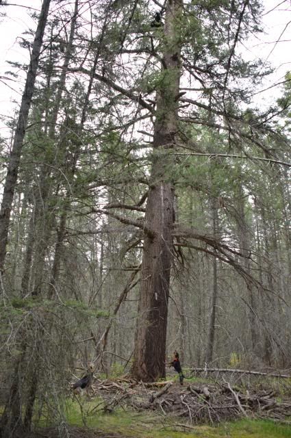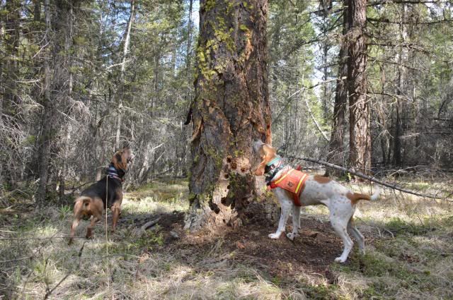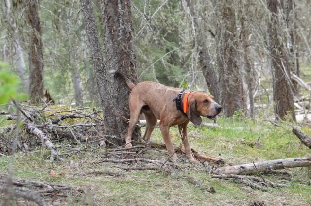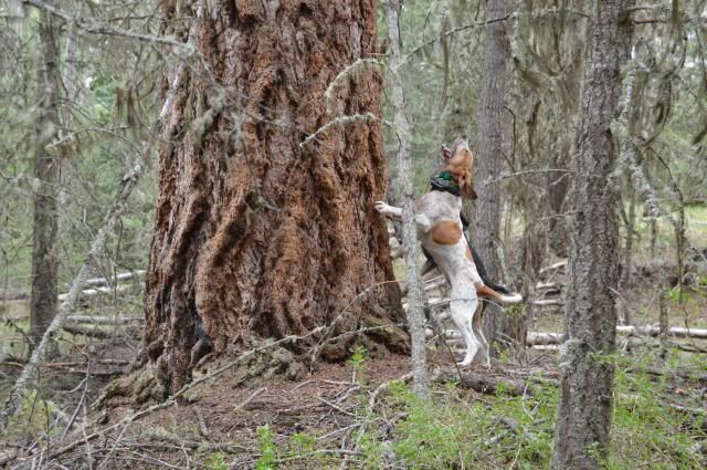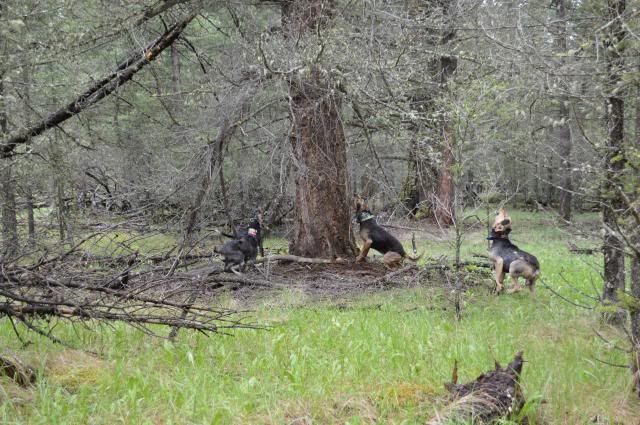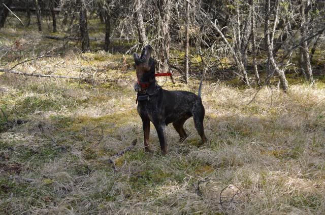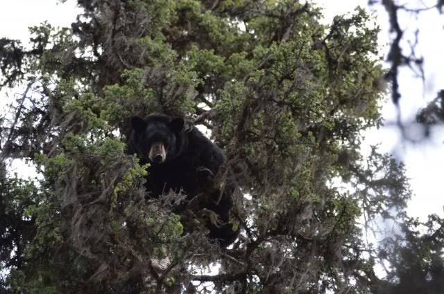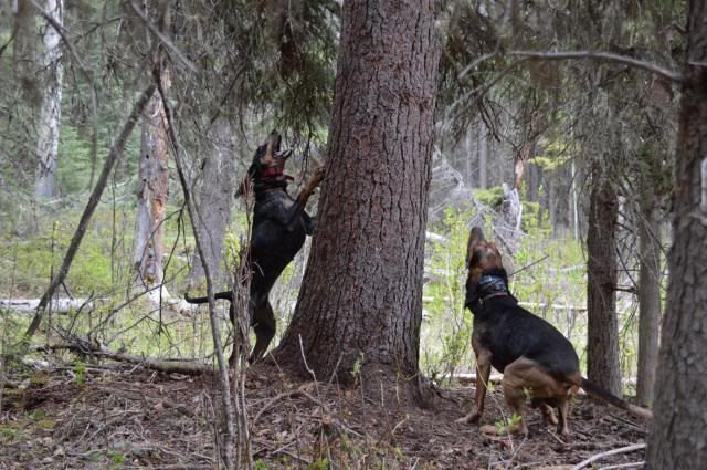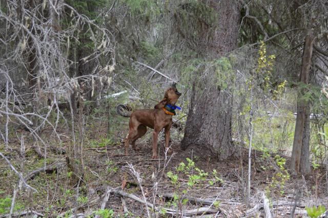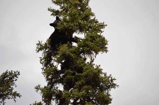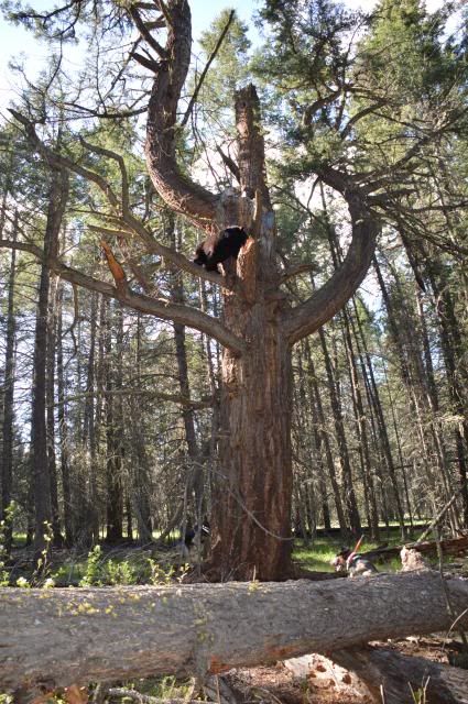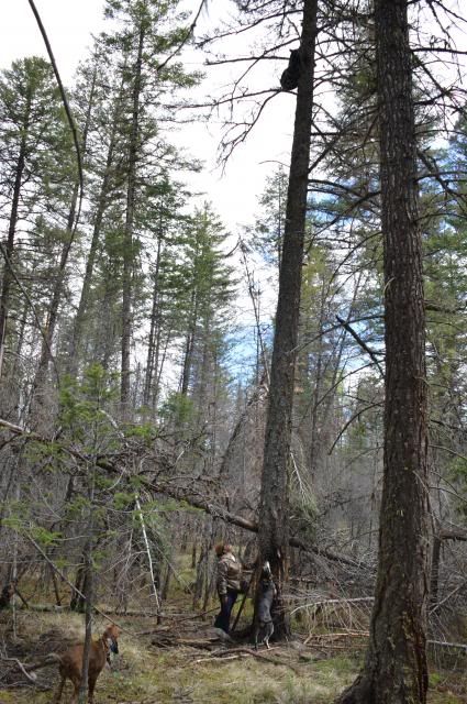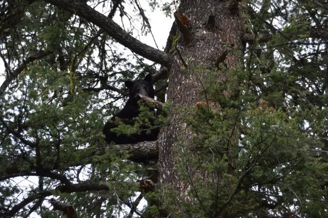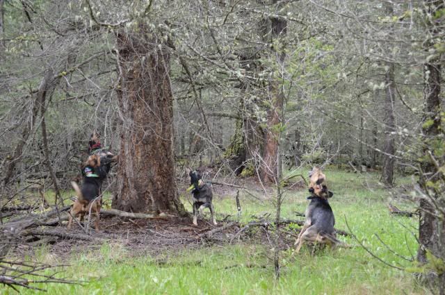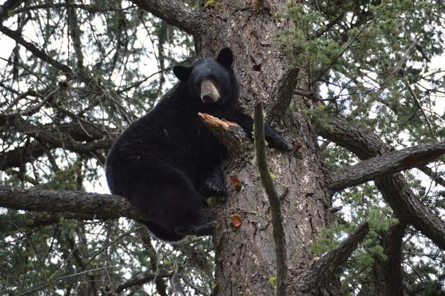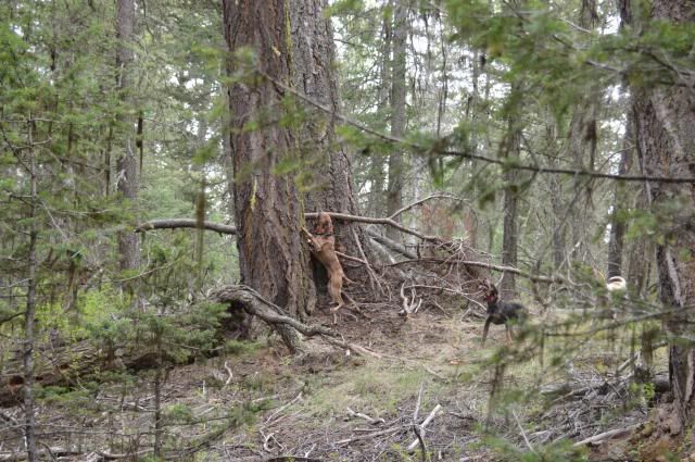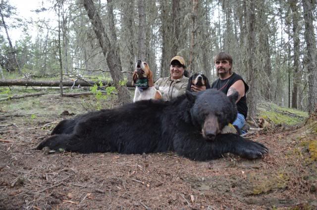 This bear gave the dogs a great run. It sure picked a small tree to get up. They were putting a lot of heat on it.
