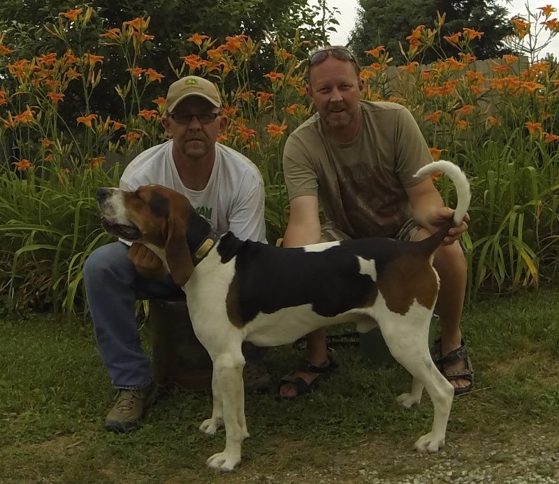 No pups on the ground but we intend to breed our females to him when we get the chance. And they should be outstanding coon and big game hounds. Live or frozen breedings available.