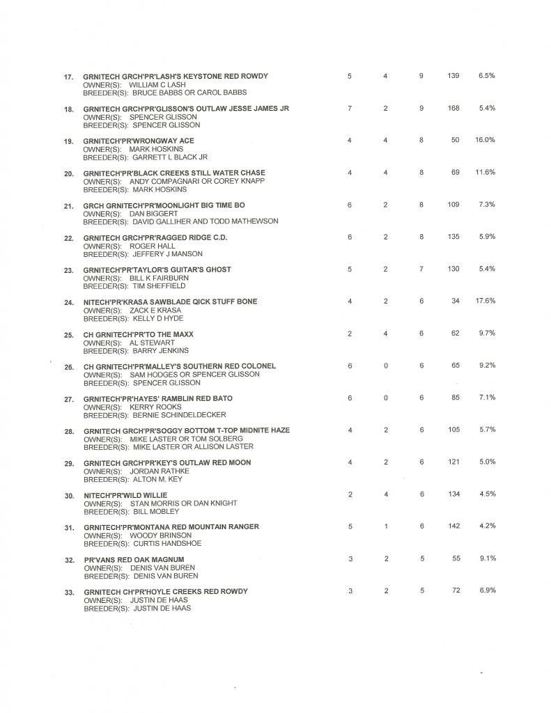1 - Families do seem to continue, however the outcross wonders with good #s seem to fade more quickly. Where's gen 3, or 2 in some cases, on some of those guys... #9,10,11,15? I'm not picking, I like some of these dog's background.