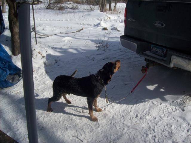 Ok, thought she probably would be. Cant wait until the weather gets better. Sick of no hunting other than letting them tree after running a drag for a mile through the woods. Next best thing I guess. Atleast getting some good exercise. Still fun.