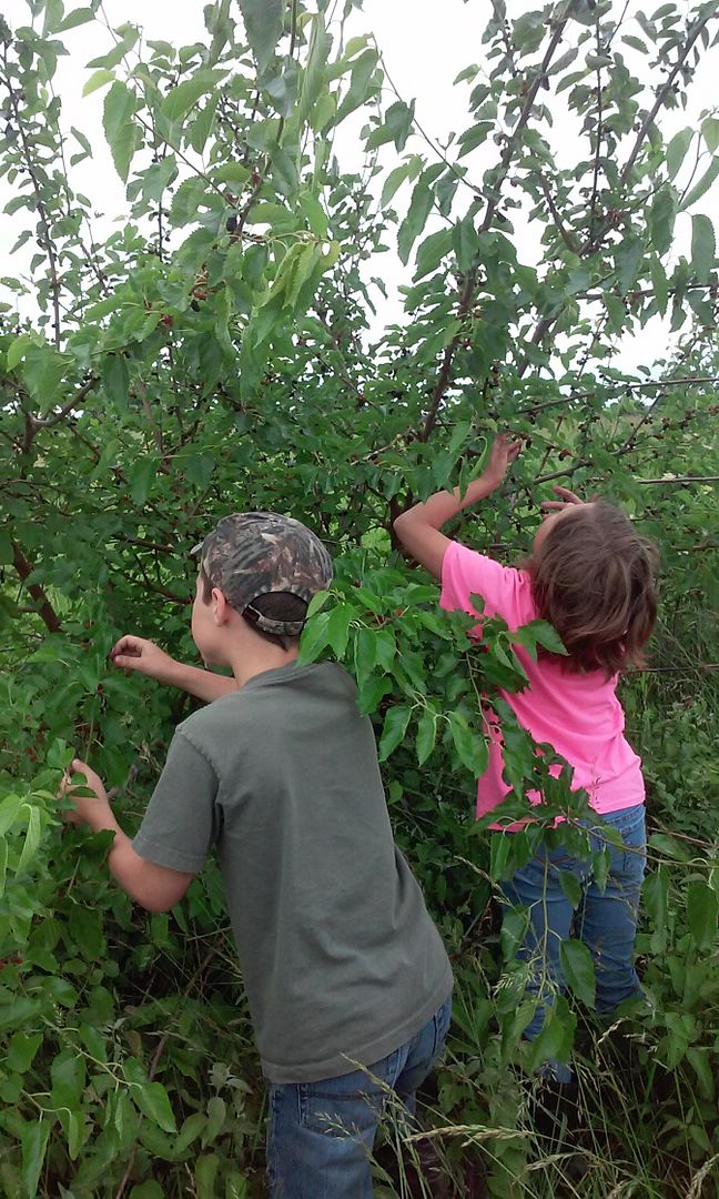 Right on the edge of ripe here. The ones getting sun are getting their color and a few are dropping.