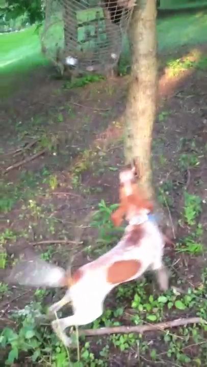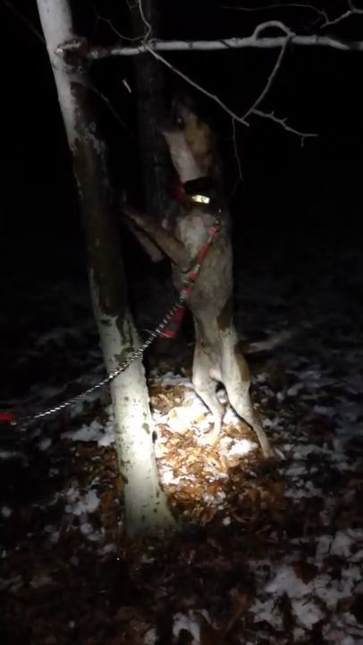 I started from his dog box dragging the live trap slowly up the hill, over the ridge, around the bend, and down the hedge row and tied the trap up in the air about 7ft off the ground on a big maple. I wanted to really test himself so I Probably made a good 200+ yard drag out of it..... I cut him from the dog box, and started him on the start of the drag and he smoked that track! Went up the hill, over the ridge and around the bend, went wheelin down the hedge row just a screamin! Hit that maple with a big locate and just went to bawling like he has been doing since 3 months old. I knew he had it in him. Now it's time to get him to the woods by himself.
