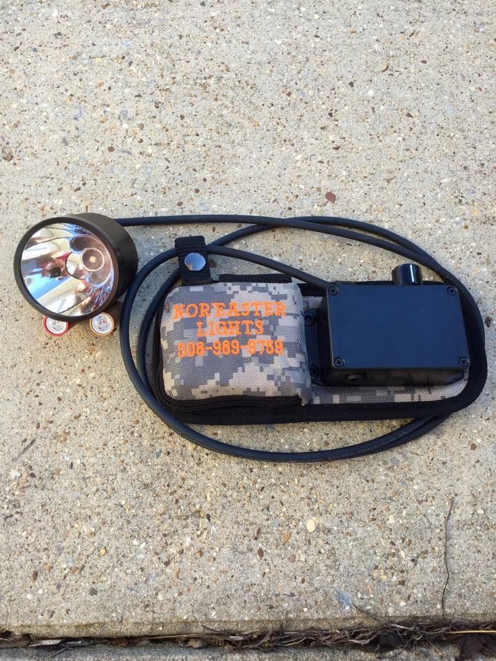 Bushwacker Belt light. Weighs in just over a pound, if your an all night hunter and need serious performance and serious burn time this light is for you!!! This light will burn wide open for 4 hrs!!!!! Available with two color modules. White module for walking and taking video or pics is great too!!!