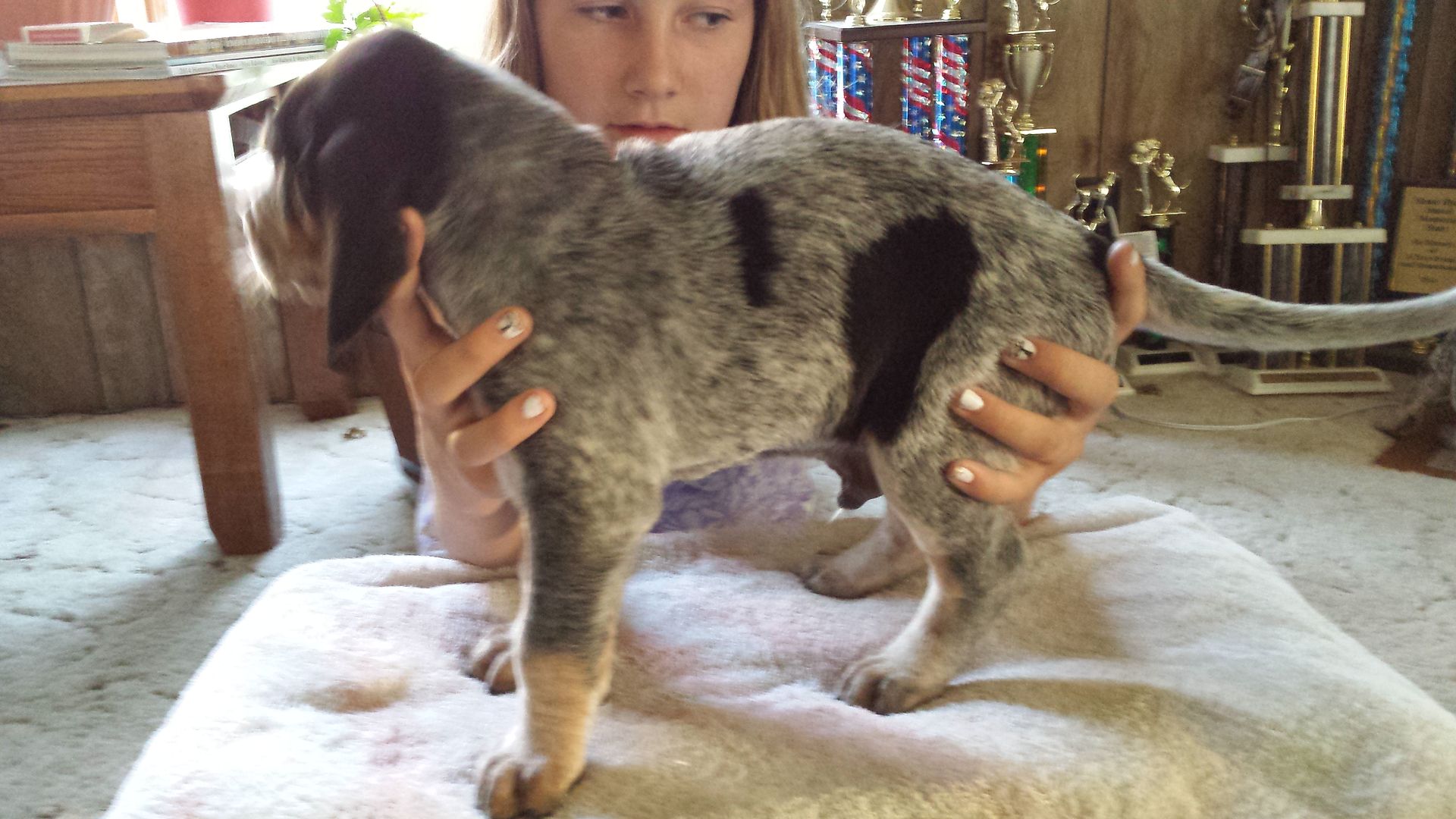 NITECH.GRCH.'PR'BUCK'S RUSH CREEK BLAZE (NITECH GRCH'PR'PERRYS RUSH CREEK OPPY+GRNITECH GRCH'PR'J.R.'S NIGHT TALKIN PEARL)( BOS 2014 IOWA SPRING CHAMPIONSHIP OVERALL SHOW WINNER,BOS LE GRAND RQE,BOS 2014 HEARTLAND CLASSIC, CH Male 2014 BBOA Zone3,3rd 2015 BBOA Zone3, 4th and CH Male 2015 RQE Arthur WI, 1st 2015 Purina Badger State Championship,2015 Iowa State BBCHA State Championship King of Show,2015 Iowa state governor cup CH Male)