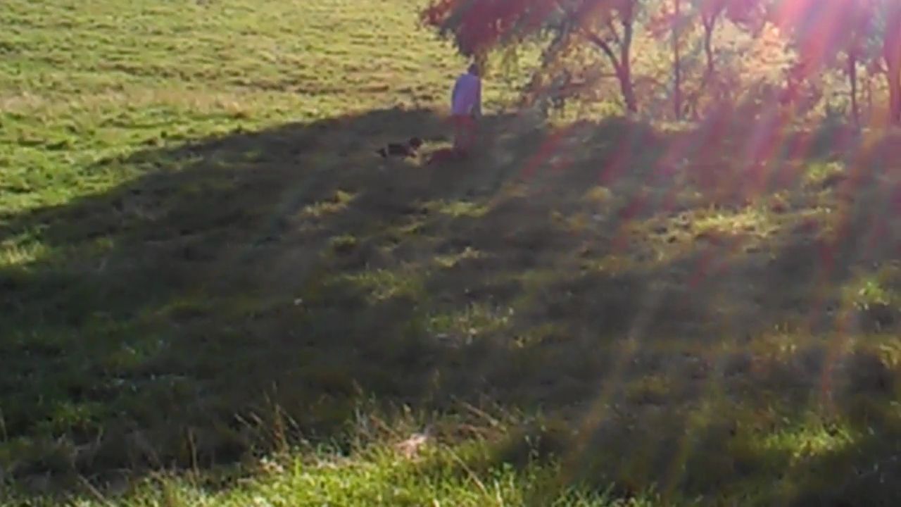 One of Dad's dogs broke his lead and ran in to us while I was trying to catch the pup on video.