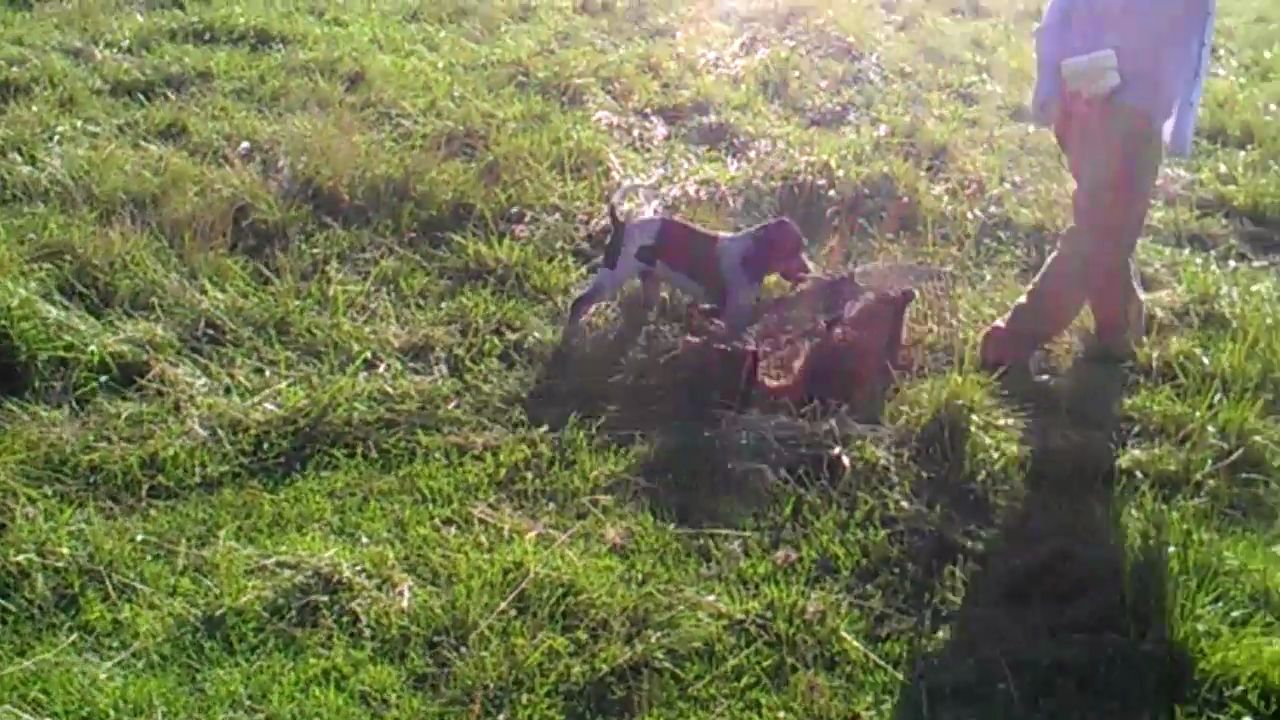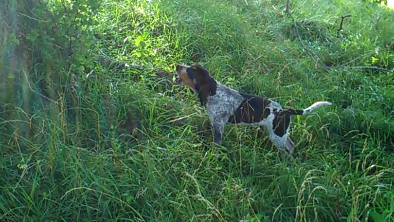 This same pup two weeks earlier followed us from the house during a short hunt with the older dogs. He followed us across the creek and up the hill where we stood until the dogs treed. I looked around but he was gone. After we finished the tree and making a loop around the cornfield I went back to the house to start looking for the pup. Surprisingly, he had made his way back to the house by himself.