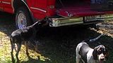 Dad called and said the neighbor dropped off a coon that he caught out of his sweet corn and was bringing it out to work with his young dogs. The two young pups out of Spur & Cricket I have running around the place are too young for me to work with so I just let them do what ever they want until they start chasing the chickens, then I step in. It took about a week of correcting, but they don't chase them anymore, LOL. I still let them run loose and get into everything else. So they were right in there when Dad pulled that caged coon out of his truck.