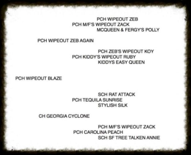 Study the Pedigree on Blaze and if you serious about breeding Wipeout Hounds he has to be one you would consider.