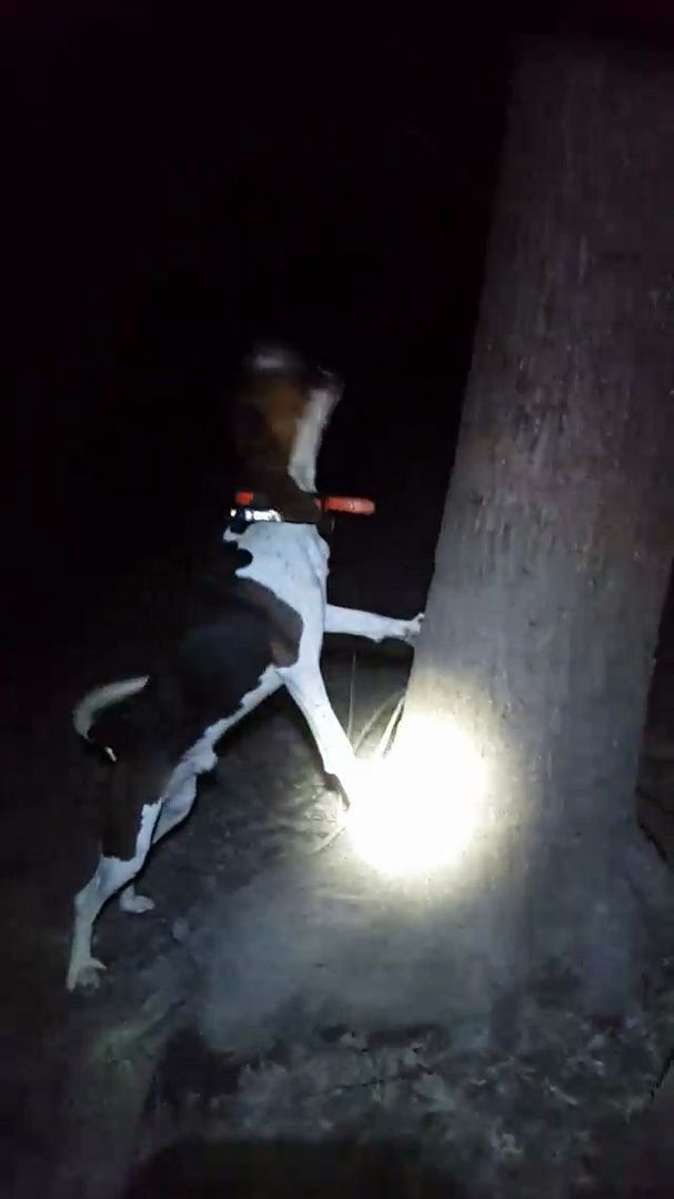 Hunted Trip and a pup out of him last night. Trip treed 3 times with 3 coons and the pup treed a coon and a den